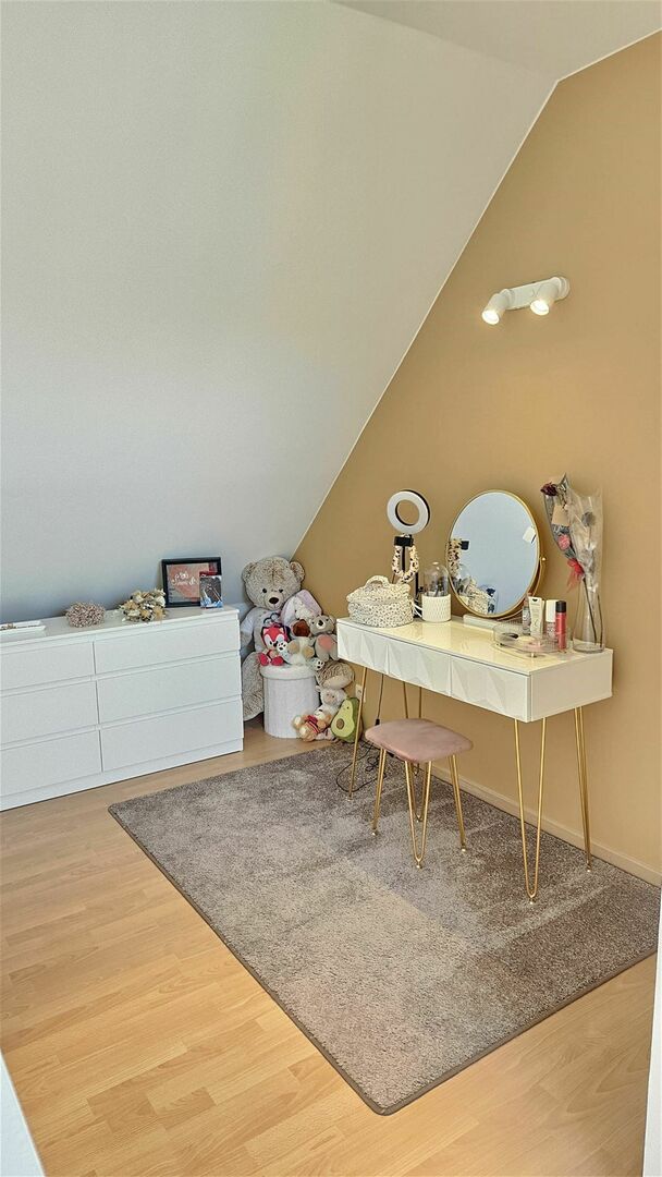 Op de bovenverdieping bevindt zich een royale overloop die kan dienen als extra zit- of werkruimte, en een grote slaapkamer.
