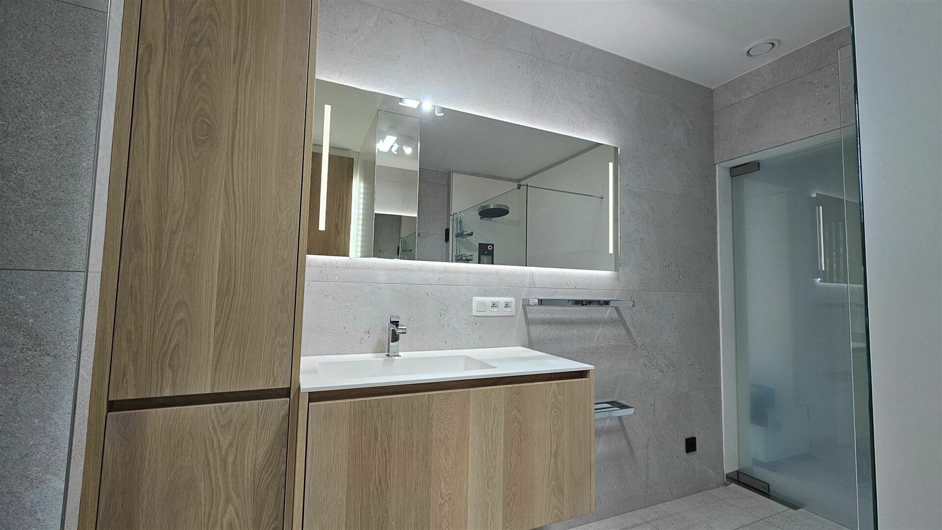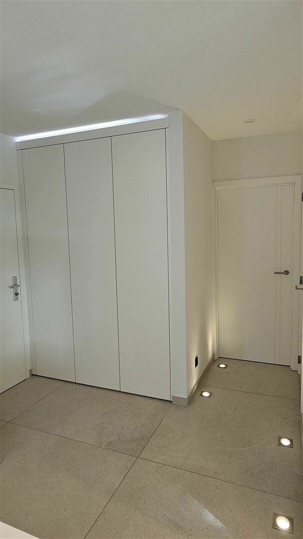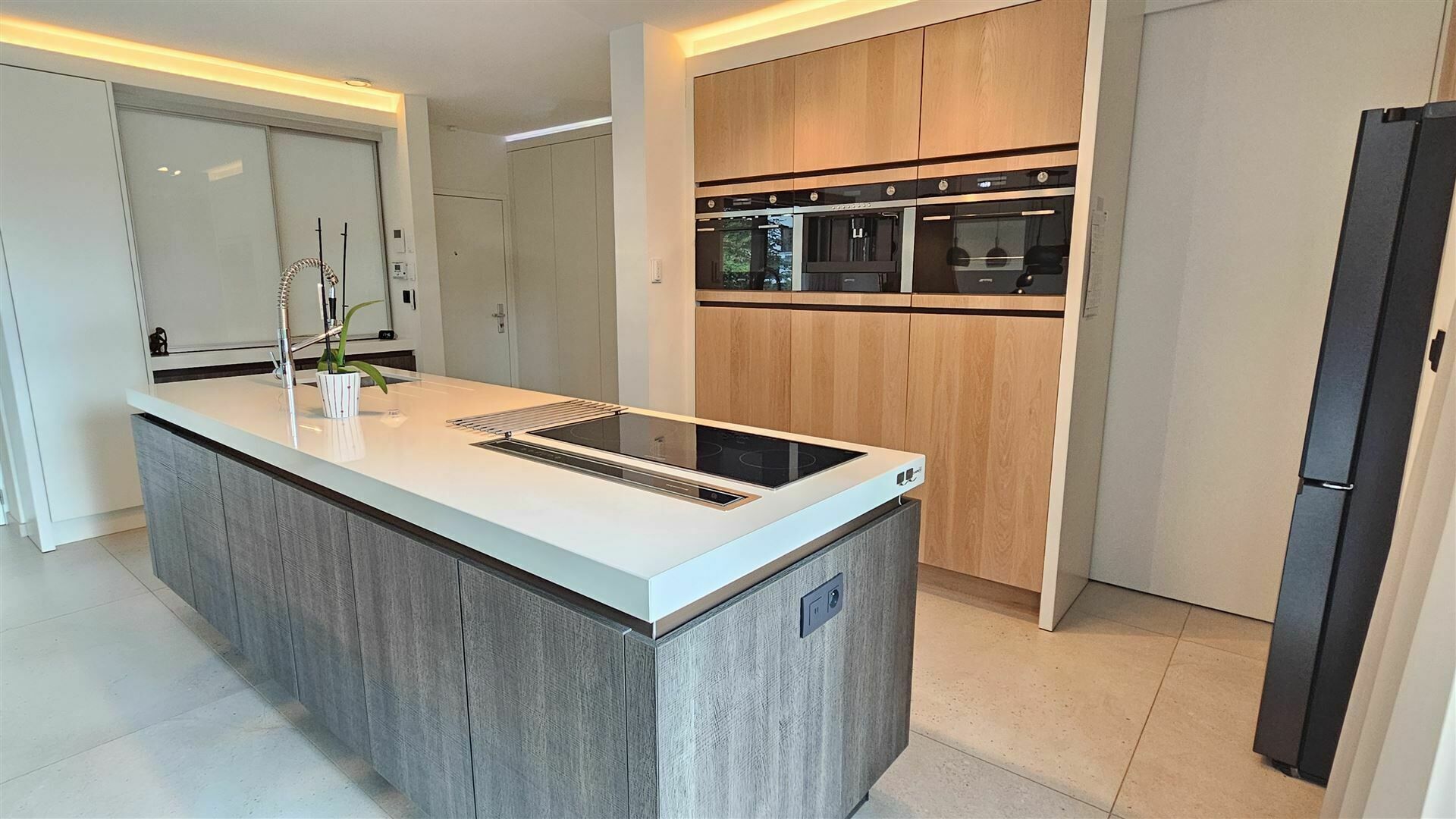 Indeling: inkomhal, WC, living met open keuken en aansluiting op de terrassen, berging, bureau/slaapkamer 2 . Dressing, badkamer en slaapkamer 1.