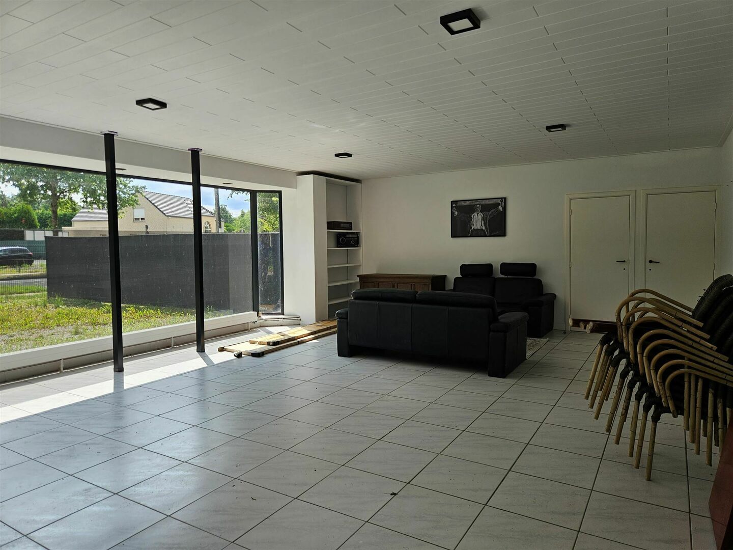 Op het gelijkvloers bevindt zich een ruime handelsruimte van ca. 96 m², ideaal voor een winkel, kantoor of vrij beroep. Aansluitend is er een grote hal van ca. 120 m² én een carport, perfect voor opslag, werkruimte of extra parkeergelegenheid.