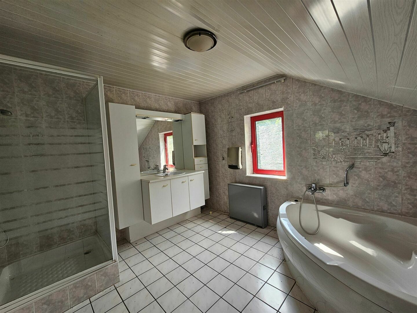 Badkamer met zowel bad als douche, en een dubbele lavabo
