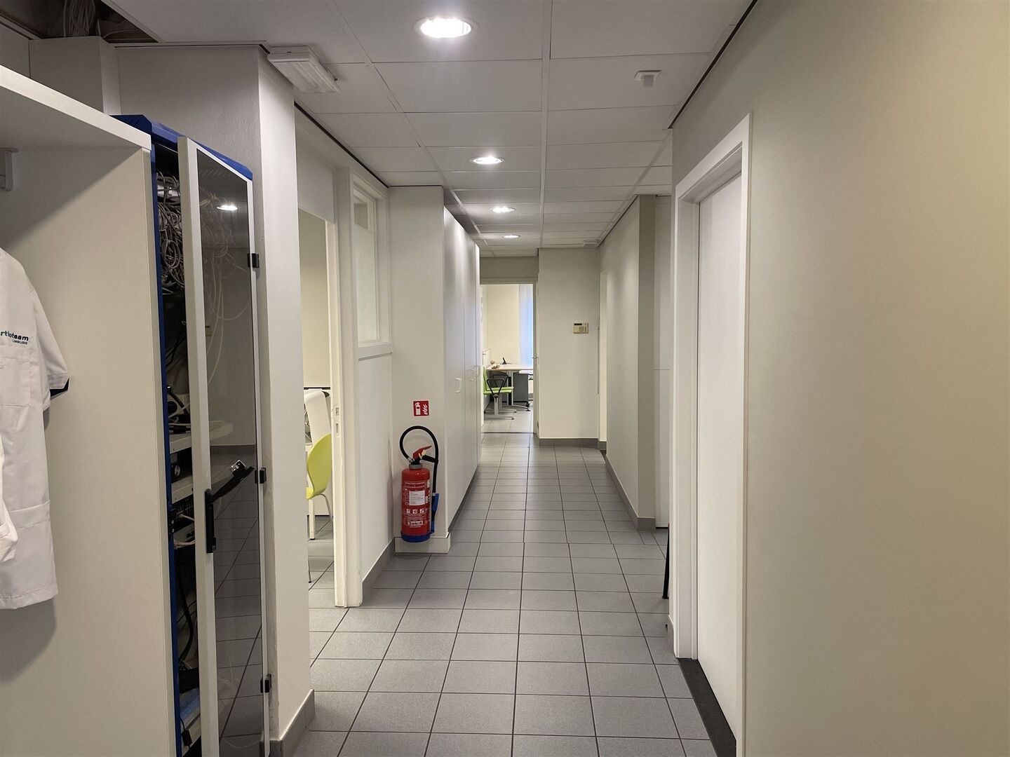 De ruimtes zijn momenteel ingedeeld in diverse kabinetten, een onthaal, berging, wachtruimte, toiletten, … en zijn uitermate geschikt als praktijkruimte of kantoor.