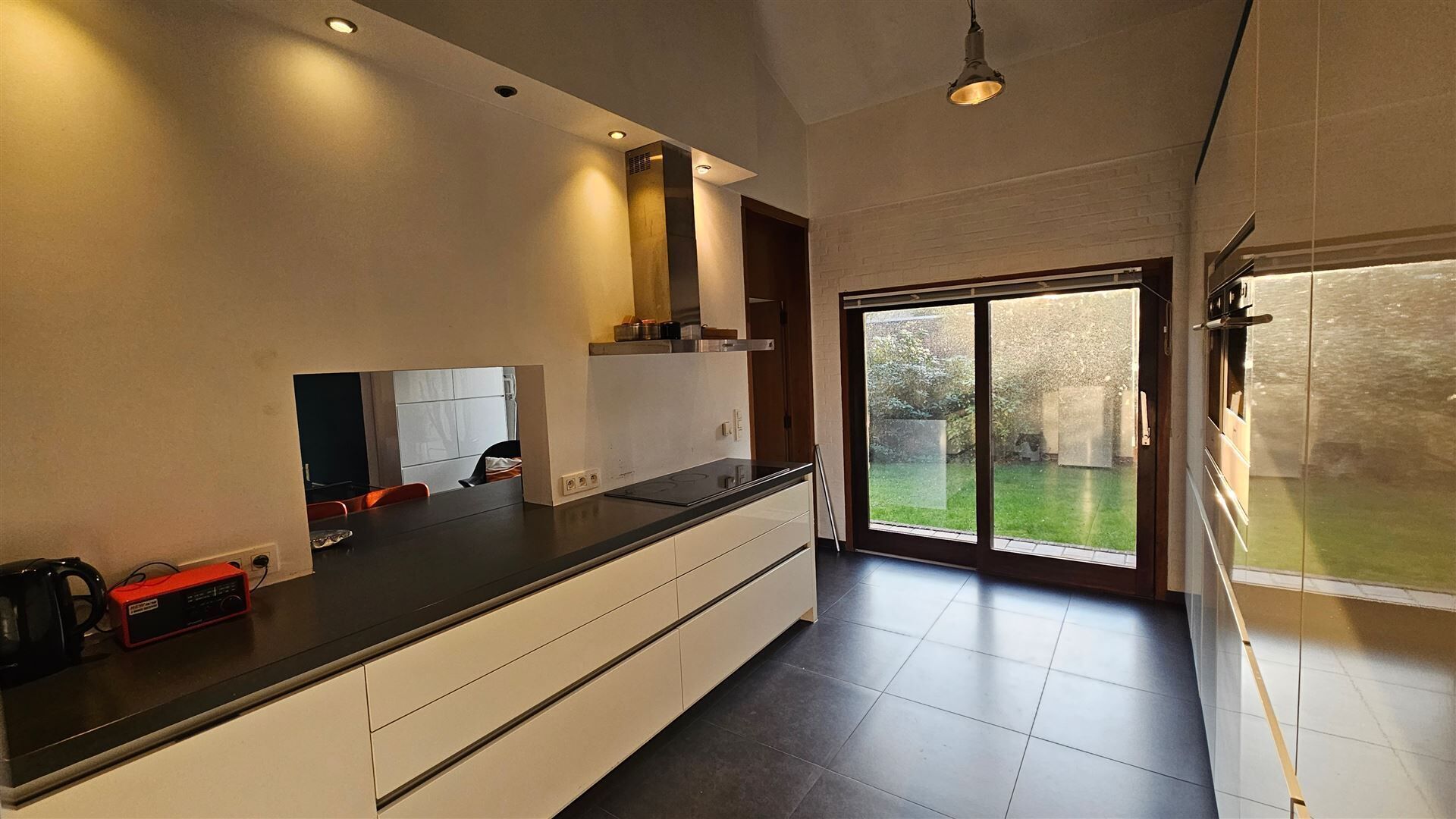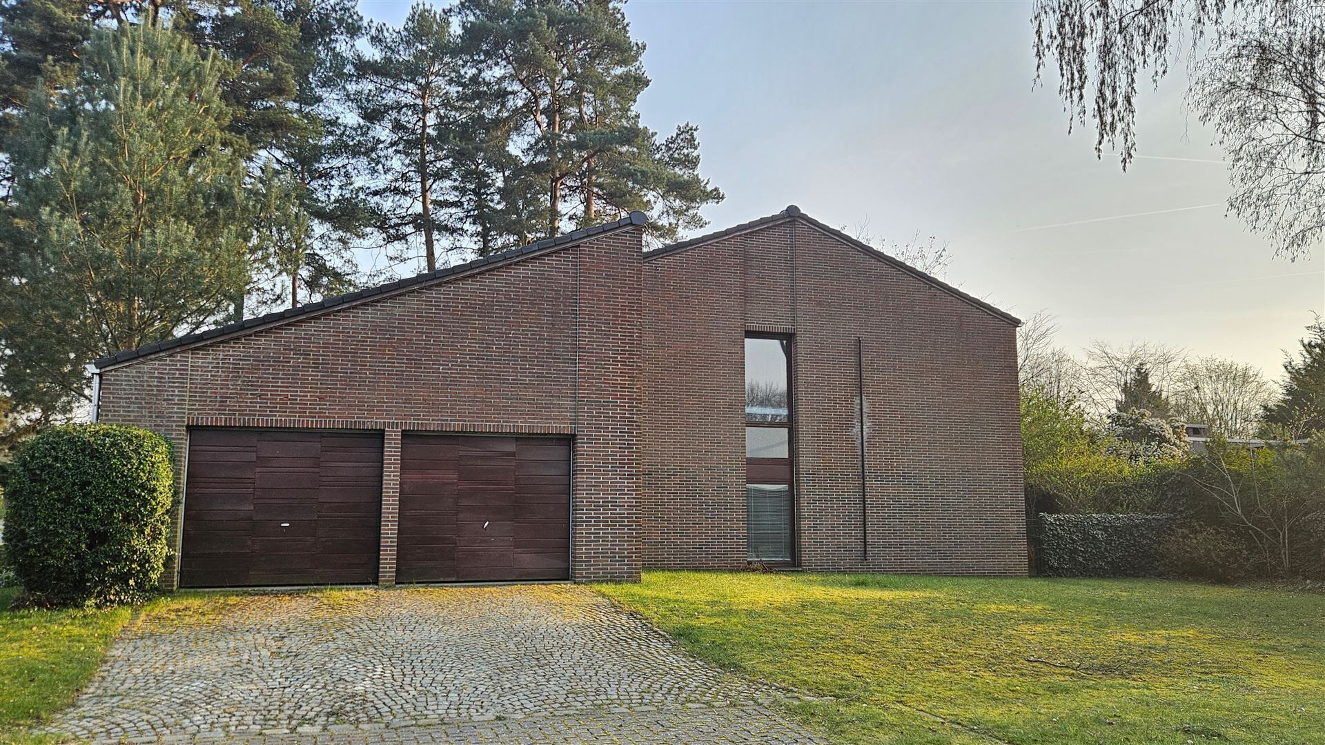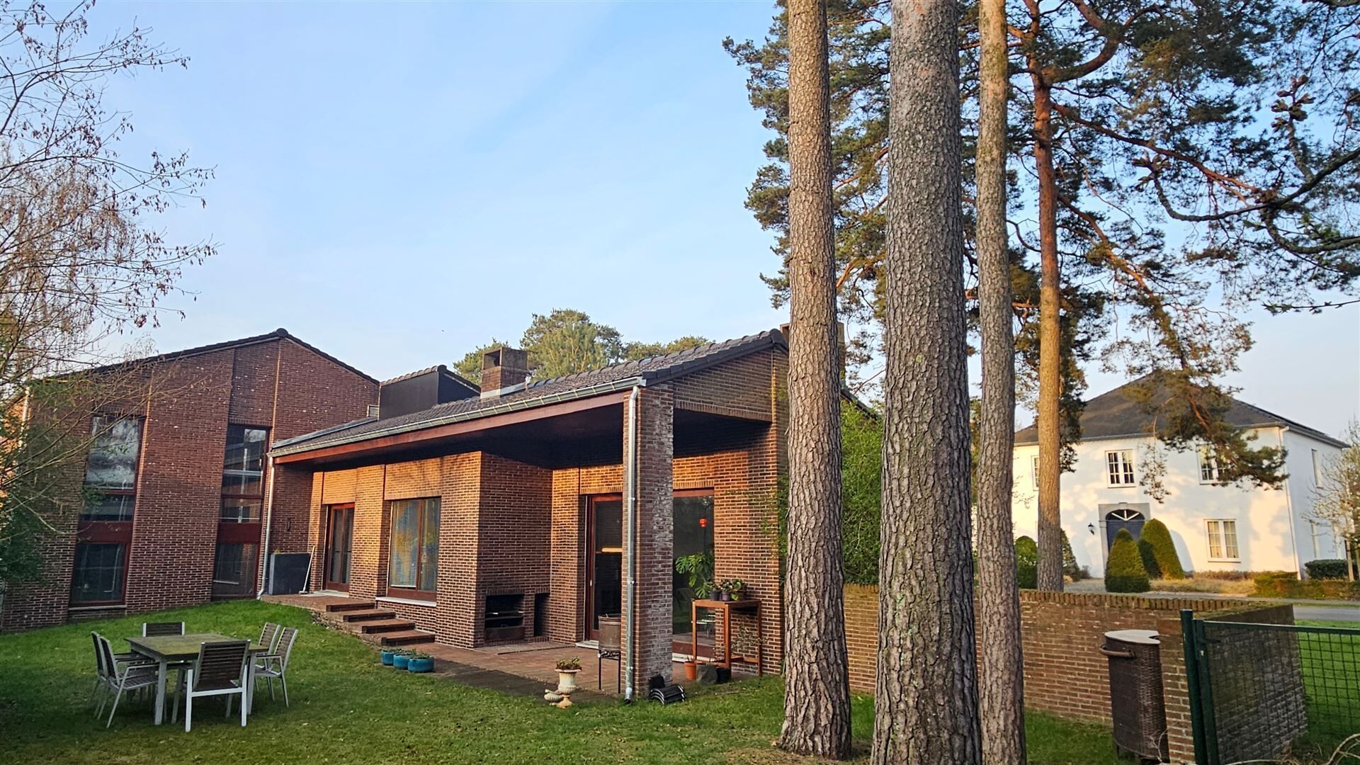 Parkeren kan in de dubbele inpandige garage. Achteraan geniet je van een zonnige tuin met overdekt terras en buitenhaard — ideaal om in alle rust te ontspannen.