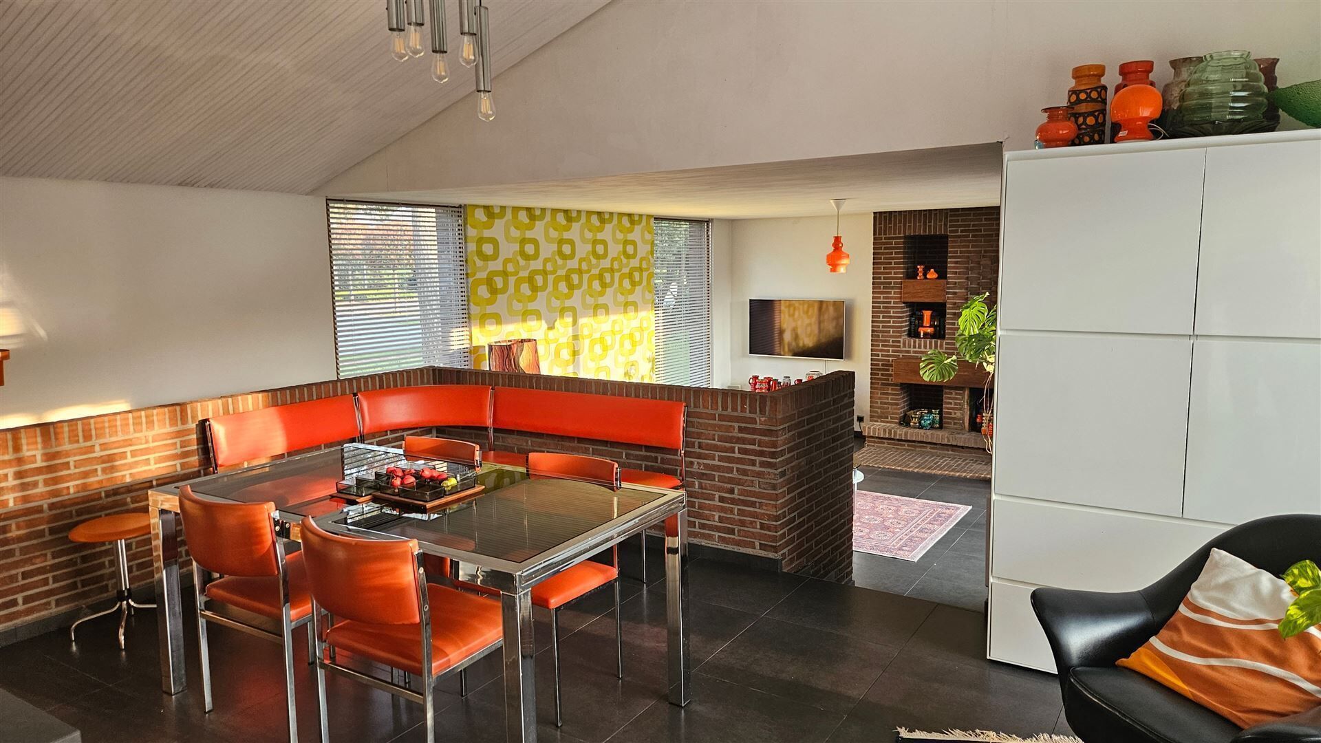 De woning is structureel in goede staat en perfect bewoonbaar, al kan ze op termijn een renovatie gebruiken. Dankzij de architectuur, indeling en inrichting ademt deze woning bovendien een charmante seventies sfeer uit.