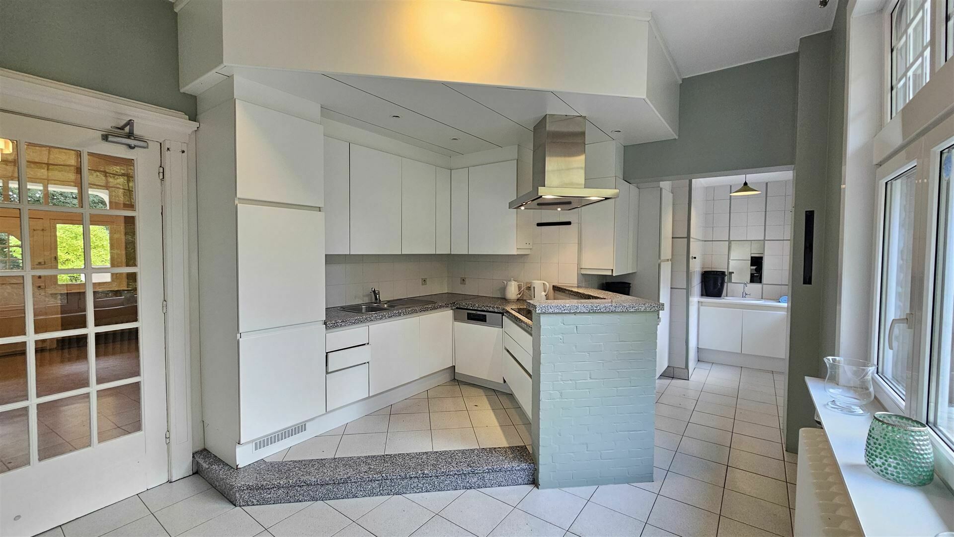 Via de statige inkomhal betreedt u de woning. Hier vindt u een bureel of tv-hoek, gastentoilet met vestiaire, een ruime en lichtrijke leefruimte met eetkamer en salon voorzien van een gezellige haard. De aparte keuken met aansluitende berging maakt het geheel compleet. Grote raampartijen zorgen voor overvloedig natuurlijk licht en een prachtig zicht op de omliggende parktuin.