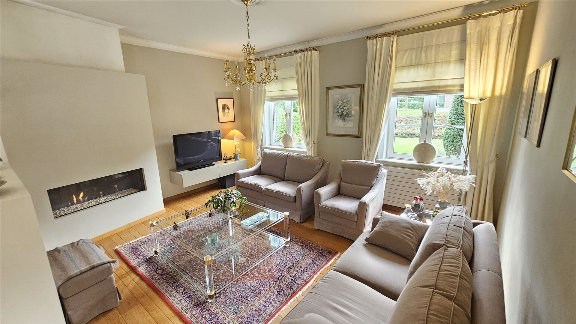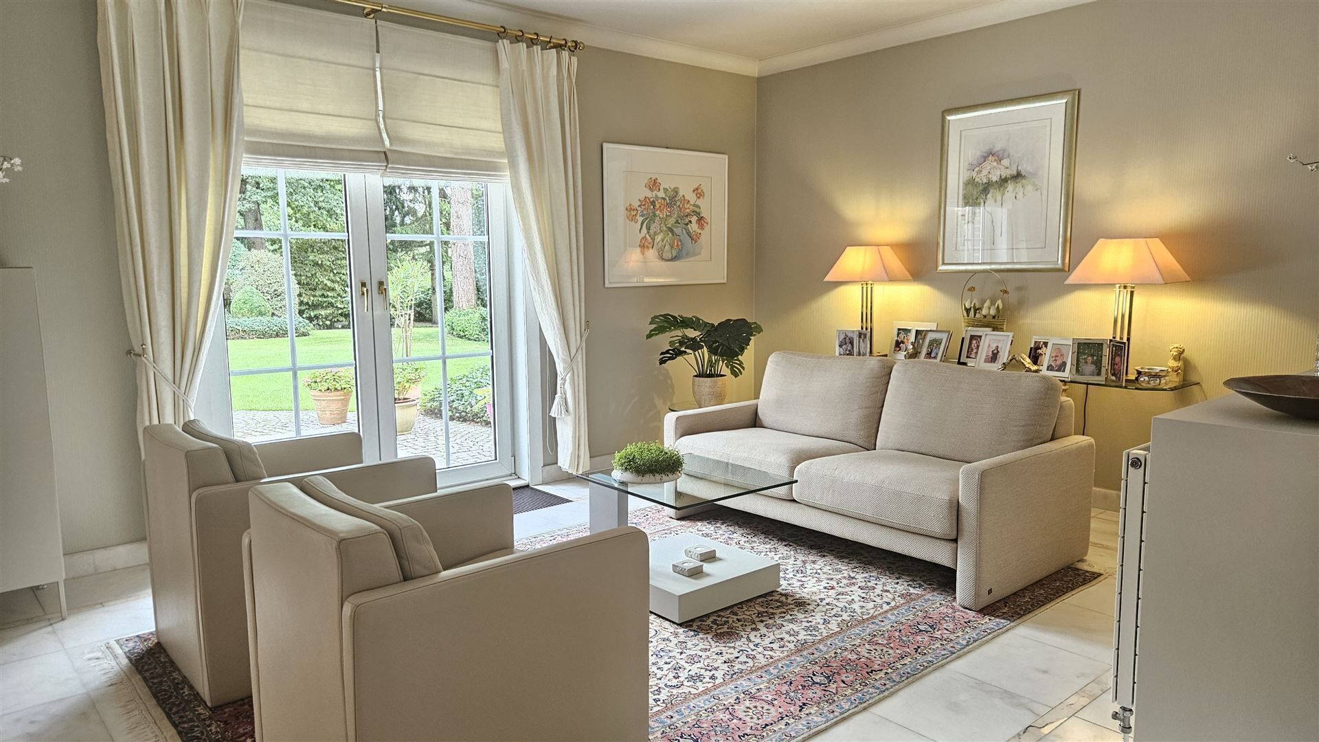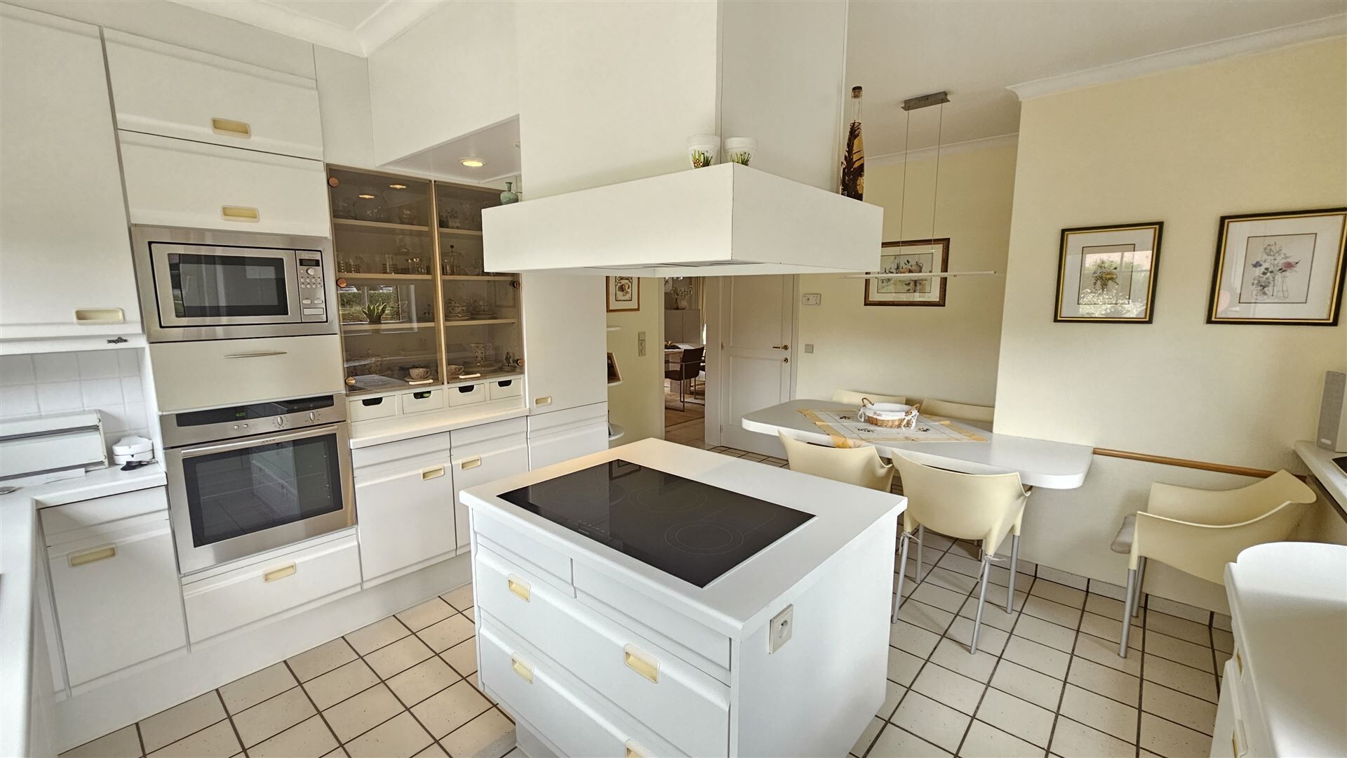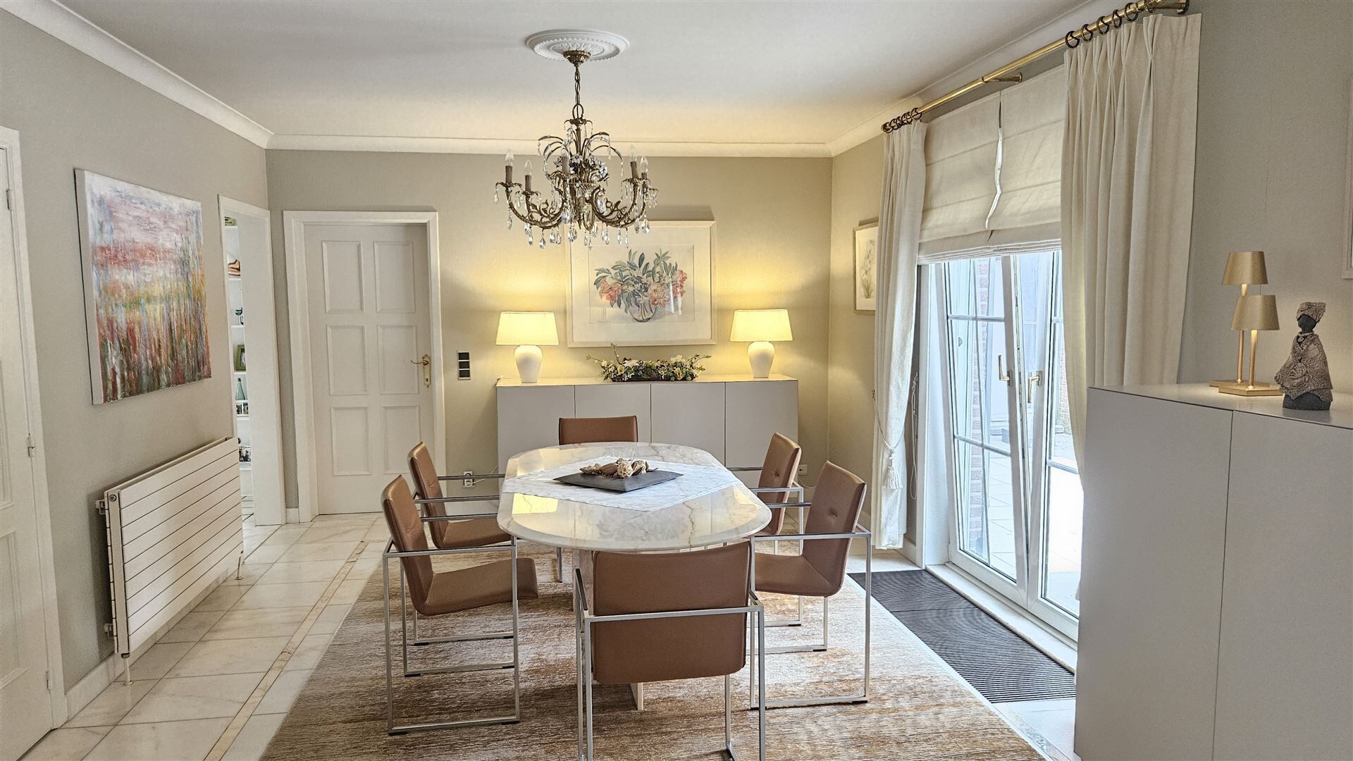 Vanuit de eetkamer heeft u directe toegang tot het zonnige terras en de prachtig onderhouden tuin, ideaal voor gezellige momenten in alle rust en privacy.